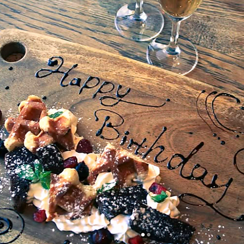 誕生日などに当店のデザートプレートでお祝いを。思い出に残る一日をごゆっくりお過ごしください。