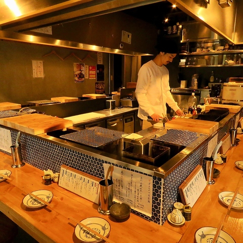 目の前で焼き上げる炭火焼を目でも鼻でもお楽しみいただけます!臨場感たっぷりのカウンターはデートにも◎