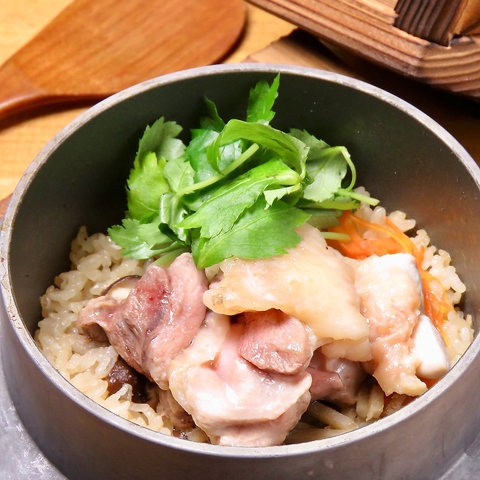 当店自慢の釜めしは、炭火でじっくり炊き上げることで、お米一粒一粒に素材の味がしみ込み、炭火ならではの香ばしさが絶品!おこげがまた最高で、炭火の熱でパリッと焼き上がった部分は、食感のアクセントが絶妙です。注文頂いてから炊き上がるまでお時間を頂きますが、皆様から「待ってよかった」とお声を頂いております。
