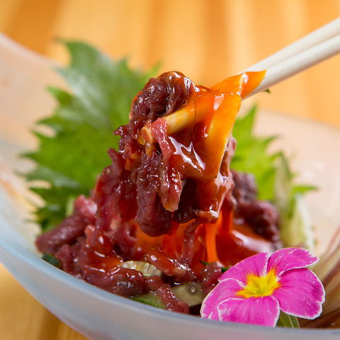 種類豊富な日本酒と一緒に丁寧に処理をした自慢のジビエ料理をご堪能ください。鹿肉や馬肉だけでなく、カンガルーやダチョウ、ワニ、アナグマなど各国を巡り修行を重ねた店主が素材の旨みを存分に活かした調理法での逸品を多数ご用意しております。