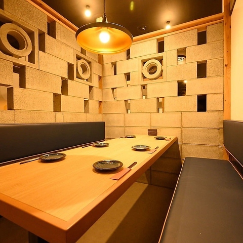 4名様の半個室を完備しております。ベンチシートと落ち着いた照明の雰囲気で多種多様なシーンでご利用いただけます。各種宴会コースは4000円~◎ご予算に合わせたコースをご用意しております♪
