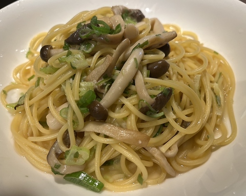 きのこと九条ねぎを使ったさっぱりしたパスタ。