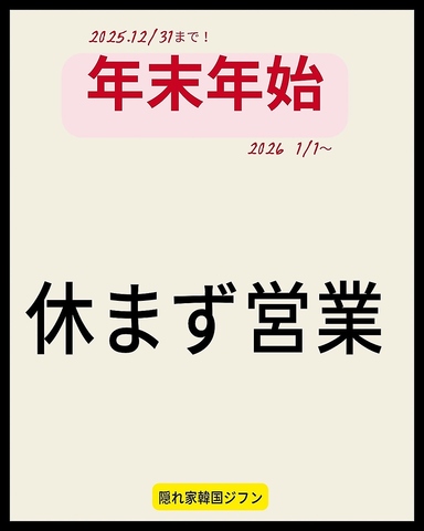当店は2025年12月31日まで年内営業、そして2026年1月1日からは新年を元気に迎えて営業いたします★
