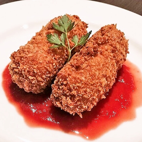 本格カニクリームコロッケ!自家製トマトソースと共に、濃厚で贅沢な味わいをお楽しみくださいね。