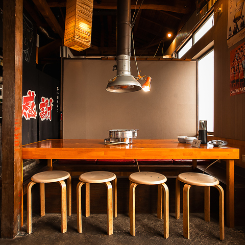 【グループでも】4名掛け、6名掛けのテーブルご用意しておりますのでワイワイ焼肉を楽しんでいただけます♪こ上がりのテーブルは掘りごたつ風になっており、座敷が苦手な方も、足を自由にお食事頂けます。