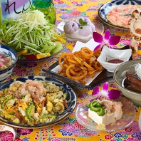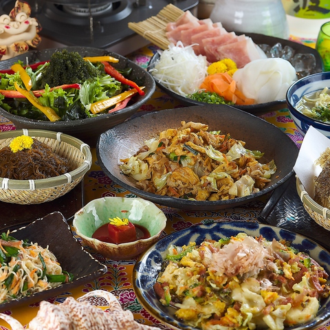 自慢の沖縄料理は食材にもこだわった逸品を取り揃えております。最大3時間飲み放題付きコースも3000円~ございますので、各種ご宴会にお役立てくださいませ♪