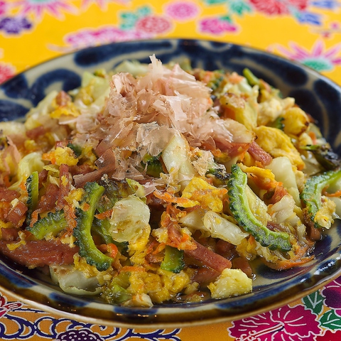 人気NO1のゴーヤチャンプルーです。栄養価も高く幅広い年代の方に人気の逸品です。迷ったらこれで決まり!