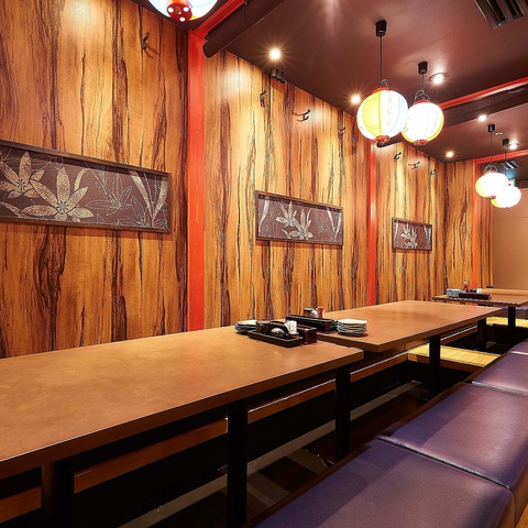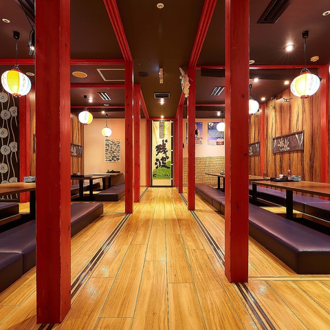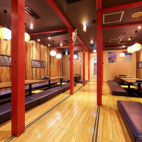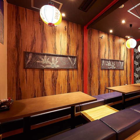 お勤め先での歓送迎会などにも大活躍の広々とした店内空間!足を伸ばして寛げる掘りごたつ席はゆったりとお食事を。雰囲気抜群なお席でこだわりの沖縄料理をご堪能くださいませ。