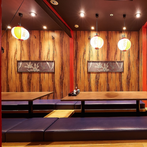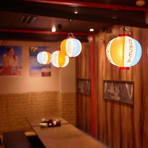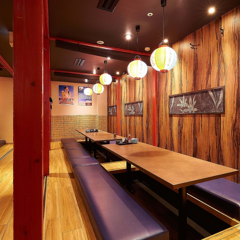 女子会に人気のモダンな個室をご提供。少人数様の飲み会にも、団体様のご宴会もご人数に合わせてご案内致します。お仕事帰りにほっと寛げる空間で自慢の沖縄・奄美料理とお酒をお楽しみください♪