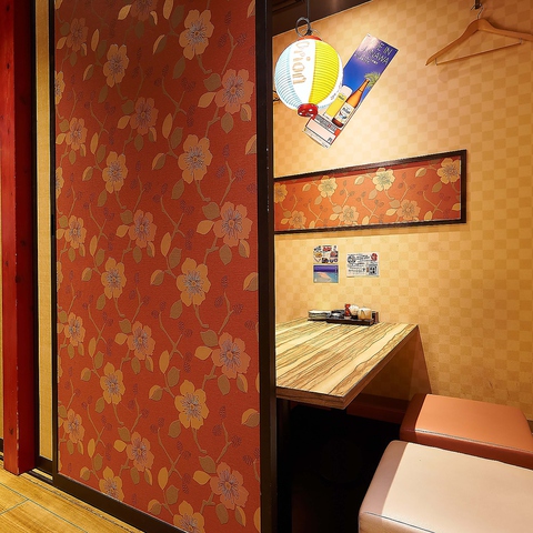 接待やお仕事帰りに寛げる個室。ふすまで仕切るのでプライベート感のある個室になります。接待やお仕事帰りの飲み会に最適です。