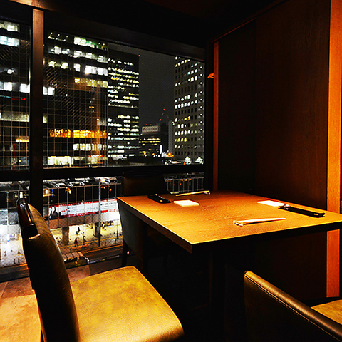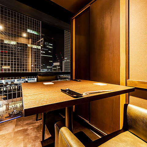 夜景を一望できる予約殺到のお席です。ゆったりとしたプライベート空間でお食事を楽しめます。