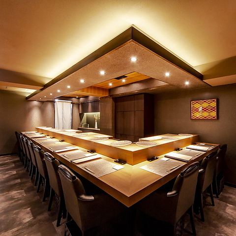 贅沢な時間を過ごすための特別な空間をご用意しました。美味しいだけでなく、心からの満足を提供するため、料理長が「鮨屋における花形」のカウンター席で握る一貫一貫にこだわりを込めています。鍛え抜かれた技とおもてなしの心で、皆様に特別な時間をお届けします。