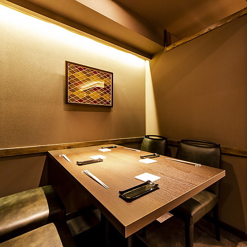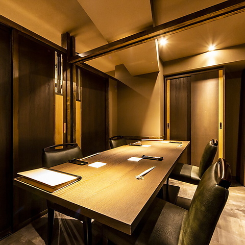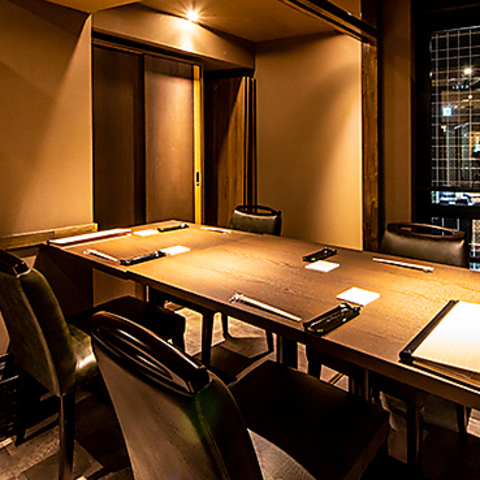 6名様までご利用可能なお席です。ゆったりとした空間は接待なども特別なお集まりにも最適。プライベート感ある落ち着いた大人の雰囲気の中、心行くまで自慢の料理とお酒をお愉しみ下さい。