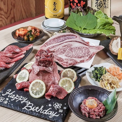 記念日、誕生日、お祝いごとにおすすめ!!黒毛和牛をふんだんに使用した花火付き肉ケーキや、黒毛和牛A5ランクのロース、肉寿司2種盛などもついた、お祝いごとにぴったりの贅沢コース!前日までのご予約でメッセージプレートなどもご用意可能です。メッセージプレート内容は前日までのご予約時にメッセージ内容をお伝えください。