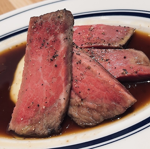 原価率100%シリーズ赤字覚悟の1品 厚切りの低温調理ローストビーフを豪快に厚切りで。100g:1600円円(税込)/200g:2980円(税込)/300g:4000円(税込)