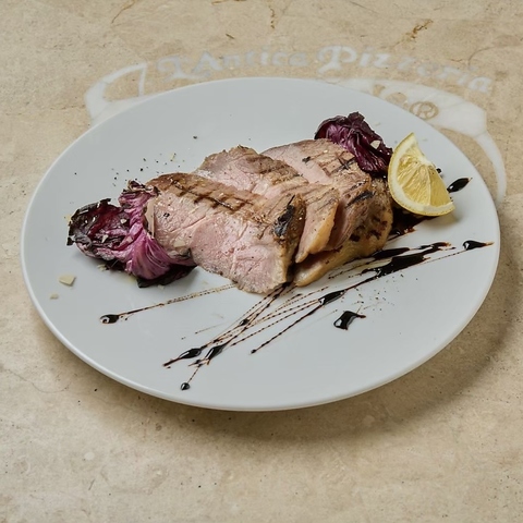 色鮮やかなピッツァ・マルゲリータの誕生は1889年。イタリアの三色国旗に見立て、緑はバジリコ・白はモッツァレラチーズ・赤はトマトソースで再現されている。当時の王妃マルゲリータが、ナポリで食して大変に気に入ったとされる。当店では35cmに統一してご提供、ソースとチーズ2倍の「ドッピア」がナポリ本店でも大人気。必食の価値あり◎