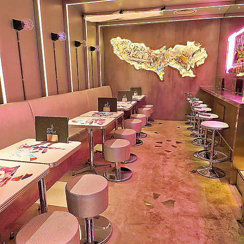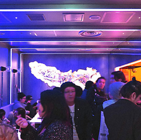 フロアコンセプトは“カオスキッチン”。そのため、実際に提供している鳥獣や色とりどりな多言語のペイント、輝くネオンで埋め尽くした外装がお客様をお出迎えいたします◎非日常な空間ながら居心地も良く、美味しいジビエ料理をじっくりと味わえます♪ジビエ初心者の方も気軽に楽しめますよ!ぜひご来店ください。