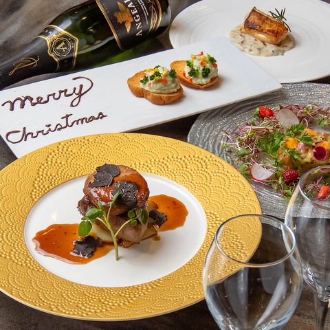 【12月20日~25日の期間限定】今年のクリスマスは、最高峰A5ステーキを中心に華やかな特別料理を楽しめる限定コースをご用意。キャビア付きの豪華プランから,手頃で満足度の高いプレミアムコースまで、2名でのご利用に最適な内容。大切な人と過ごす“特別な夜”を彩る、期間限定のクリスマスディナーをお楽しみください。