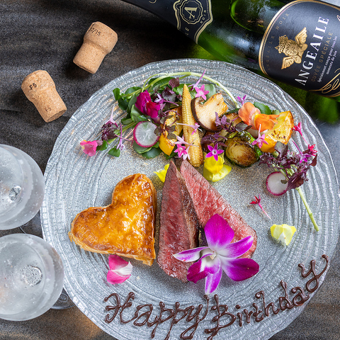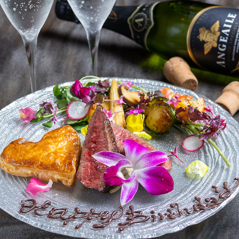 誕生日や記念日などの特別な日にはメッセージケーキを◎コースのデザートを無料でメッセージ付ケーキに変更