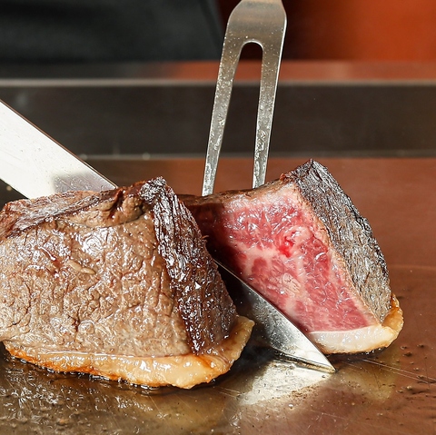 カウンターの目の前の鉄板でステーキを豪快かつ繊細に焼き上げる抜群のライブ感!要予約となります。