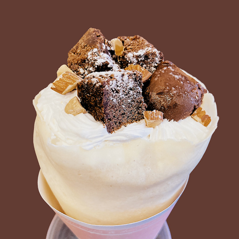 チョコレートたっぷりの濃厚な自家製ブラウニーと、人気の生チョコを合わせたチョコづくしクレープ!