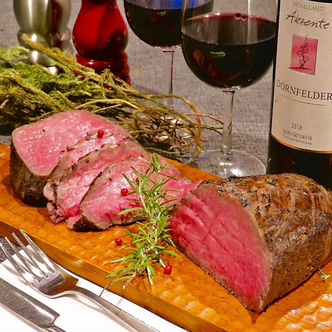 【当店おすすめ!!】風味が濃厚で、赤身肉らしい肉々しさを楽しんで頂けます!当店オリジナルの調理法で柔らかくしっとりと仕上げたローストビーフ♪淡路牛のステーキとWメインのコースがおススメです!