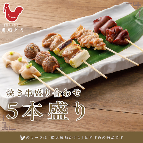 当店の焼鳥は新鮮な朝引きの【国産恵那鶏(エナドリ)】を使用しております。恵那鶏は岐阜県の緑豊かな自然の中で衛星管理の行き届いた鶏舎で育った健康的な若鳥で、ヒナから出荷まで抗生物質や抗菌剤などの薬剤が入った飼料を一切使用せず育てています。