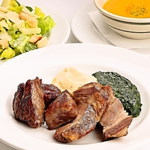 イベリコ豚のグリル&サイコロカットステーキ2種のメイン食べ比べ/カフェ付