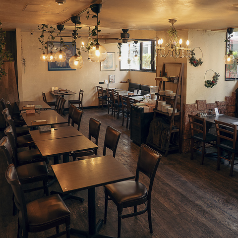 ゆったりくつろげるテーブル席は、女子会やデートにぴったり。話に花が咲くチーズ料理とともにどうぞ。