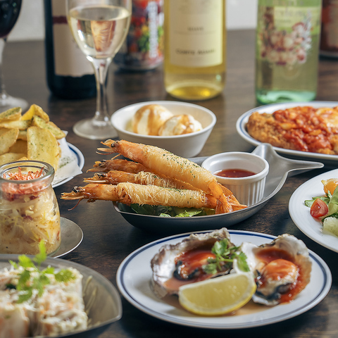 ワインに合う海鮮料理やパスタ、アラカルトなど盛りだくさん!牡蠣のグラチネやチキンカツレツなどなどみんなでシェアも可♪女子会や宴会、デートにもおすすめ◎