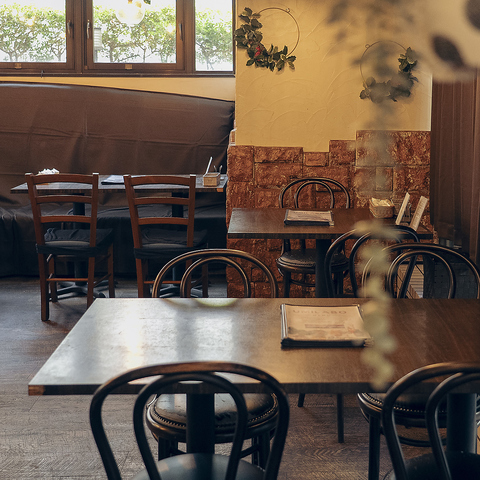 2名様専用のテーブル席は、ほどよい距離感と落ち着いた雰囲気が魅力。初めてのデートから気の置けない相手との時間まで、会話が自然と弾む空間です。