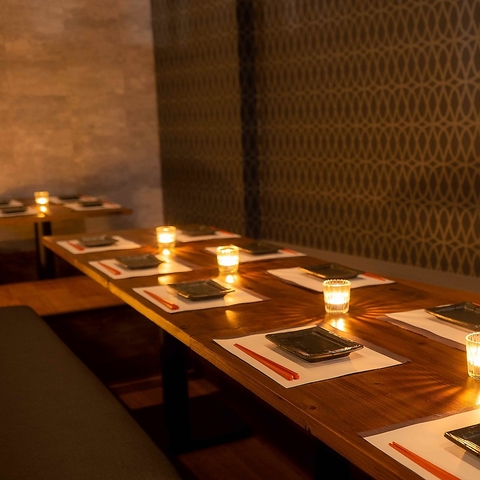 8名様までご利用可能なテーブル◎カーテンで仕切られた少人数向け個室もございます。4名様掛けのお席が並んだテーブル個室は6名様以上で個室利用頂けます。一目を気にせず食事を楽しみたい方におすすめのお席です。