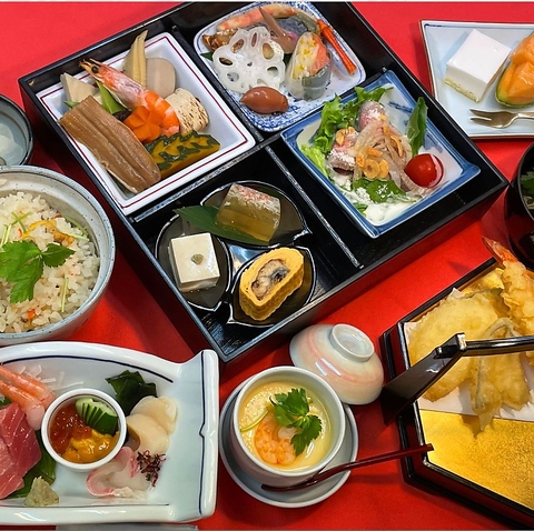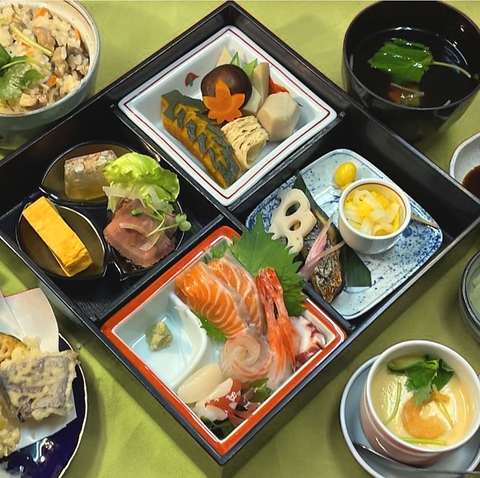 鮮度抜群のお刺身やサクサクの食感がたまらない天ぷらは、多くのお客様に愛される当店自慢の人気メニューです。自慢のお料理はお得な御膳や定食、お重、コースなどでお楽しみいただけます。素材本来の旨味を活かした繊細な味付けは、お酒との相性も抜群です!美味しい日本料理とお酒を囲んで、笑顔溢れるひと時をお過ごしください◎