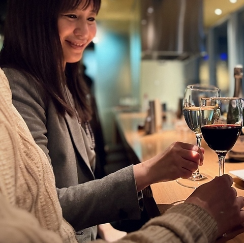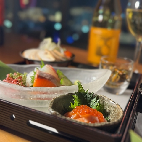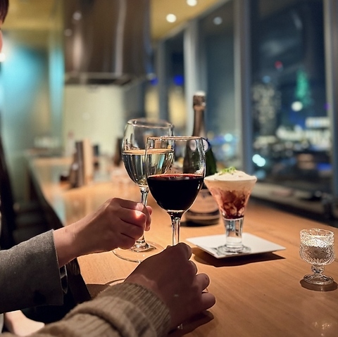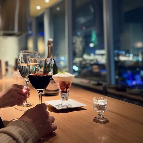 夜景を望む特等席カウンターと個室を完備でデートや女子会に最適な空間。特別感のある空間が◎