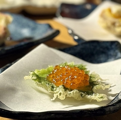 オリジナリティ溢れる当店自慢の創作天麩羅!「雲丹 海苔カナッペ」「いくら 大葉カナッペ」等、海の幸をふんだんに使用した天麩羅に「モッツァレラ」「パルミジャーノ」等洋風天麩羅もございます!豊富なメニューからお気に入りを是非見つけてください♪