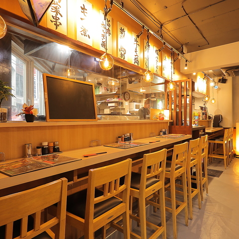 お一人様やカップルでのご利用に最適なカウンター席もご用意しています♪職人が串を打つ様子や調理の様子を間近で見ることができ、ライブ感を楽しめます◎サクッと飲みたい時や、気の置けない方と語り合いたい時にぴったり。お気軽にお立ち寄りくださいね!