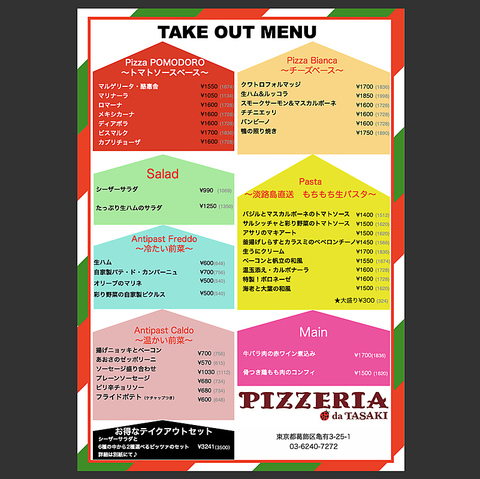 ピッツェリア ダ タサキ 亀有店 テイクアウト 2025/09/15 更新