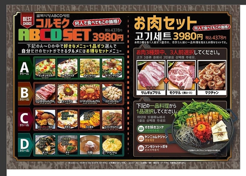 【コルモクABCD SET】何人で食べてもこの価格!