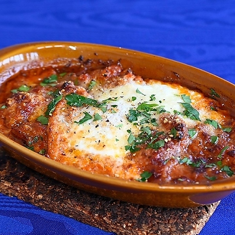 ピリ辛トマトで煮込んだ牛もつの深みある味わいを半熟玉子の優しいまろやかさと共に。 ハーモニーが優しくワインとの相性も抜群