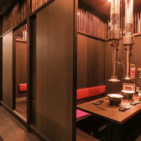 全席完全個室!無煙ロースター付きで、髪や服ににおいが付きにくい♪プライベートな空間で、こだわりのお肉をお楽しみ下さい。