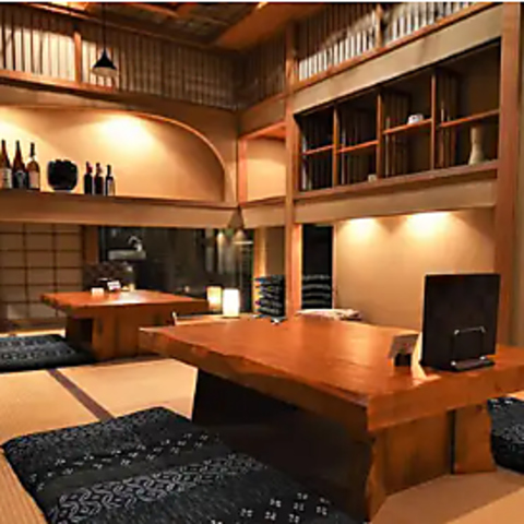 駅近の好立地にありながら、都会の喧騒を忘れさせてくれる上質な和モダン空間が広がっています!木の温もりを感じる店内は、柔らかな照明が灯る落ち着いた雰囲気です♪少人数からご利用いただける扉付きの完全個室を完備しており、プライベート感を重視したい大切な夜に最適◎