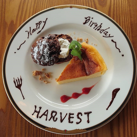 大切な人のお誕生日や記念日にサプライズでお祝いを!当店で人気のケーキを盛り合わせたデザートプレートをご用意いたします!バースデー以外にもメッセージをお入れできますので、お気軽にスタッフまでご相談ください。お客様の思い出に残る幸せなひとときを一緒にお手伝いいたします♪