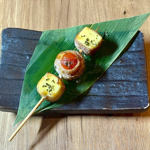 女性人気抜群◎彩り豊かな野菜巻き串は罪悪感ナシのヘルシーメニュー!トマトやアスパラ、レタスなどの新鮮な野菜に豚バラやベーコンを纏わせ炭火で焼き上げます。野菜と肉の旨みがギュッと詰まった野菜巻き串をぜひお試しあれ♪1番人気の野菜串はアスパラ巻き!アスパラを1本丸ごと巻いたボリューム満点です!