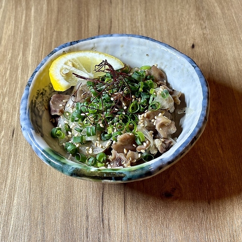 当店の看板メニュー!脂の少ない鶏の首皮を一本一本、丁寧に手巻きし、じっくりと何度も下焼きを重ね、50年注ぎ足しの秘伝のタレを染み込ませ旨味を凝縮させた、まさに『一皮入魂』のとりかわです。秘伝の「タレかわ」又はカリカリの「塩かわ」の2種類からお選びいただけます。やみつきの美味しさをご堪能あれ♪
