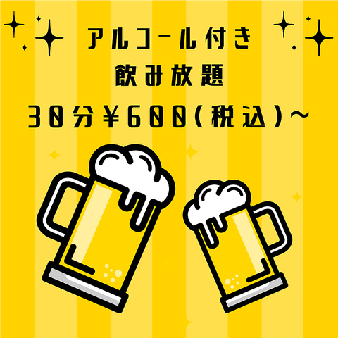 【アルコール付き飲み放題】30分600円(税込)~※特別期間中は料金が変動する場合が御座います。