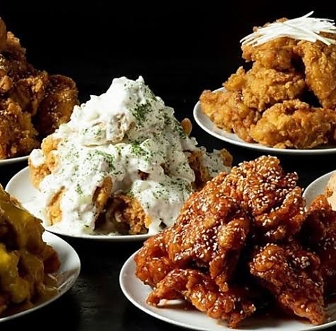 ヤンニャム、ハニー、サワークリーム、塩胡椒。ピースごとに選べるチキン!本場韓国の味になっています。何本でもいけちゃいます♪