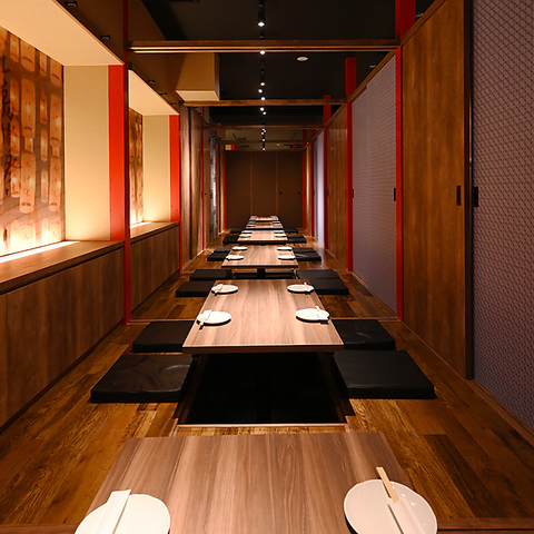 数々の有名店を手がけてきた空間デザイナーがプロデュース◆店内は落ち着いた大人の雰囲気で、ごゆっくりおくつろぎいただけます。完全個室は【4.名様】×9室【4~6名様】×4室【6~8名様】×6室【8~12名様】×3室【12~20名様】×1室【20~36名様】×1室【36~56名様】×1【最大120名様の宴会場】×1室。貸切も可能です。