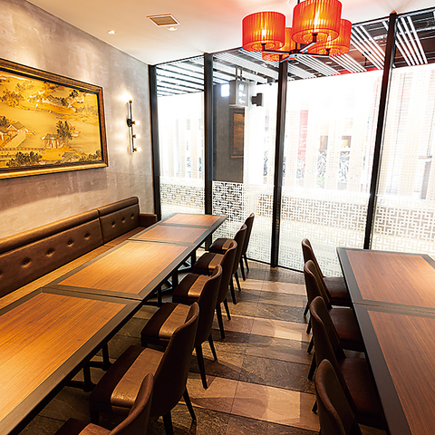 【接待や大切な日に…】人数に合わせたお席のご用意をいたします。ゆったりしたテーブル個室や、円卓個室など様々な個室をご用意。高級感あふれる店内は接待や会社宴会、特別な日にも最適です。様々なシーンに合わせ、是非ご利用ください。