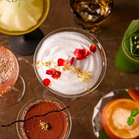 ・フラワリーライチ・ポワ―ルレモングラス・カカオダージリン・つゆひかり(烏龍茶)・あさのか(緑茶)・フロリダ産(オレンジ/グレープフルーツ)・カオスグレープ・エレガントアップル・ハーバルピーチ・自家製 クラフトコーラ・自家製 ジンジャーエール・本日のノンアルコールカクテル・ヒルドン スパークリングウォーター