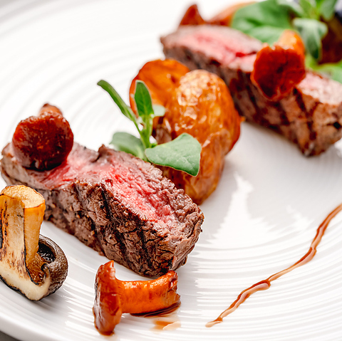 一見何かは分からないひと皿。目で楽しめる驚きと盛り付け丁寧に仕上げていく逸品を各コース料理で体感いただきます。